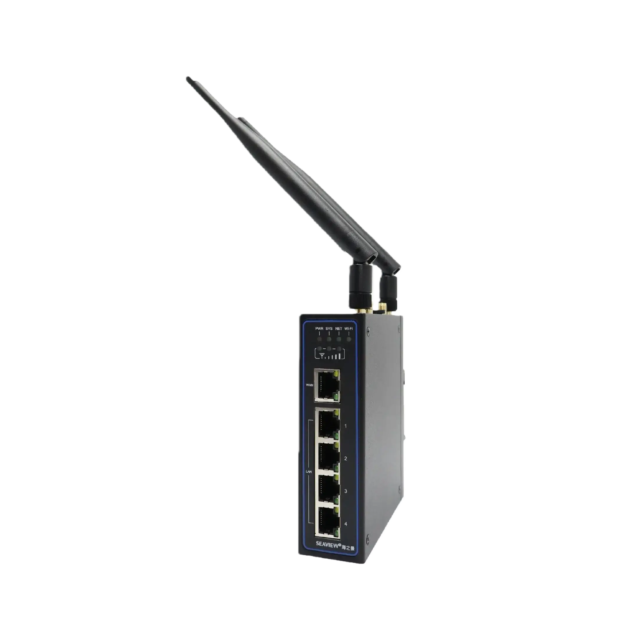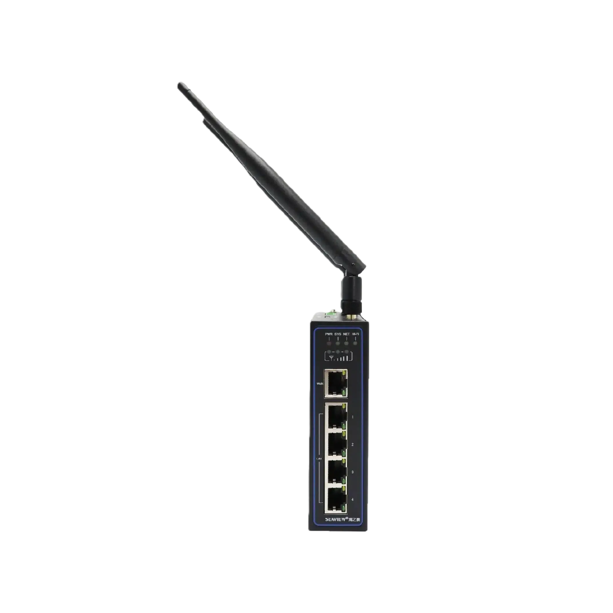 • 1×WAN + 4×LAN (100 Mbps), 2.4 GHz Wi-Fi, 1×RS232, 1×RS485, 2×SIM